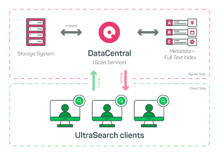 With SpaceObServer DataCentral, you get a scalable centralized search index for UltraSearch that conserves your resources and can be queried at lightning speed.