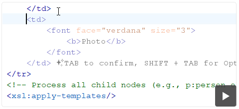 A new AI Autocompletion feature provides real-time, context-aware code and markup suggestions (e.g. XSLT, XSD, JSON Schema, or Schematron) at the caret and can be invoked with the Autocomplete action. The Generate Code action now includes the structure of associated XML or instances in its prompts for better results and can be triggered from the editor using Ctrl+G / Command+G. AI development actions (Generate Code, Explain Code, Chat About Code) support more document types (including HTML, XHTML, XProc, XSpec), making it easier to generate, review, and discuss code across a wider range of documents.