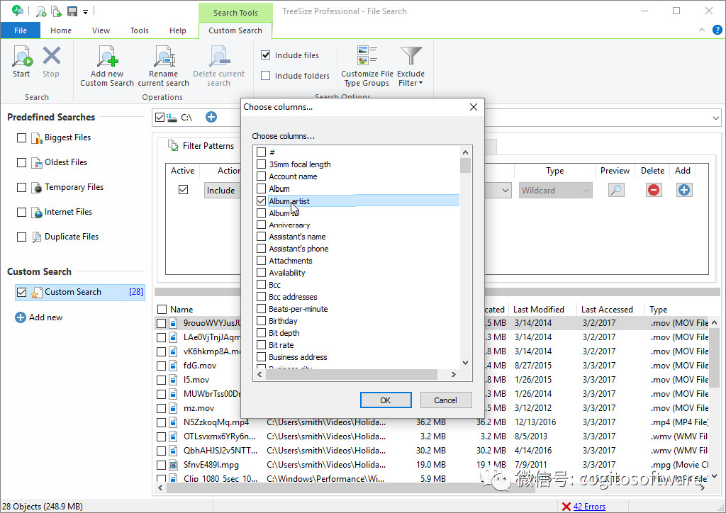 All columns and information supported by Windows Explorer can be displayed in the new TreeSize file search and exported in various formats: For example, the width and height of images, the number of pages of Word documents or the tags of JPG and Office files are now available as columns.