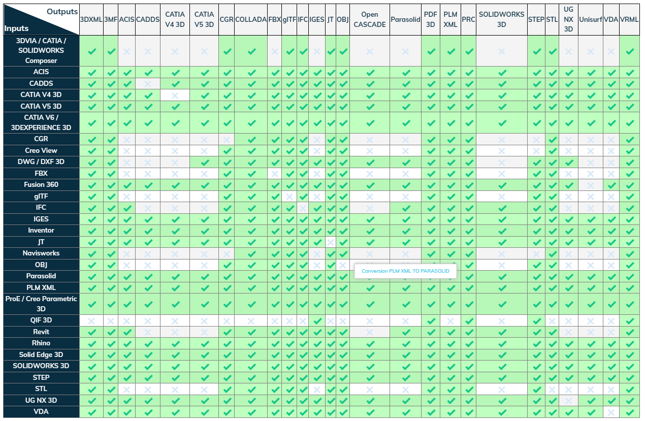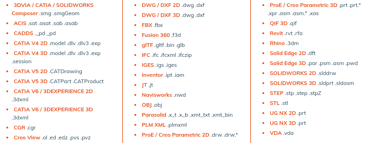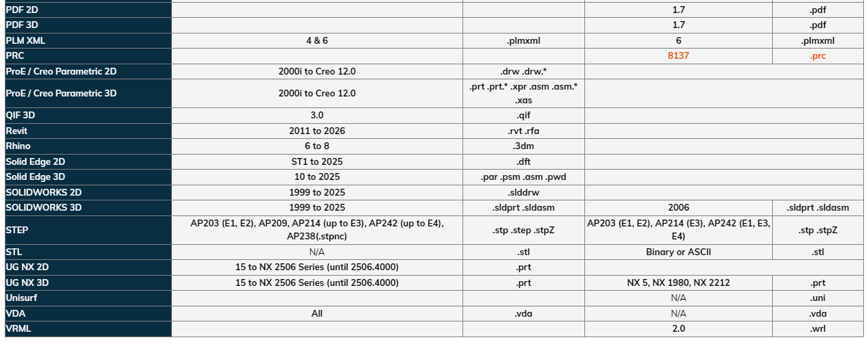 CATIA/CREO/INVENTOR/NX/RHINO/SOLIDEDGE/SOLIDWORKS/ACIS/PARASOLID/CGR/DXF/IGES/STEP/QIF/IFC/JT/REVIT ...