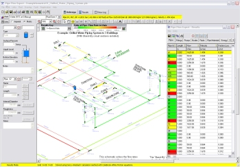Users get to see the calculated results on the actual pipe system drawing where the color coding and graphical representation of the piping model gives them an instant visual analysis of their piping design, the flow rates, the pressure losses, and the operating points of their pumps.