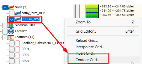 36. Create contours of the depth horizon grid by Right-Clicking the grid and selecting the Contour Grid… command