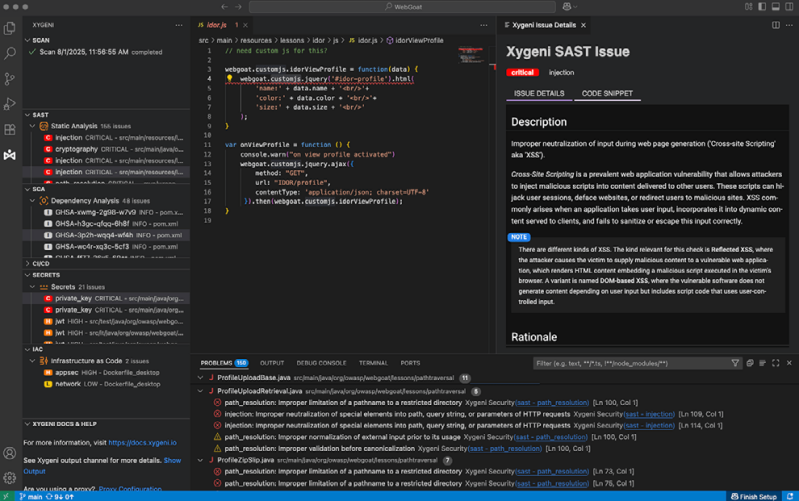 Xygeni Al SAST combines advanced static analysis with intelligent malware detection to deliver unmatched protection for proprietary code.It identifes injection flaws,misconfigurations,and hidden threats such as backdoors or logic bombs before they reach production.