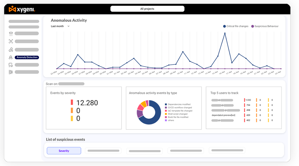 Xygeni’s Anomaly Detection platform provides an additional layer of security by continuously monitoring and analyzing activities within your SCM and CI/CD infrastructure to identify and respond to unusual behavior quickly. Xygeni detects anomalies that indicate unauthorized modifications, access, or exploitations in real time. This proactive approach ensures that potential security breaches are addressed before they can escalate into serious threats.