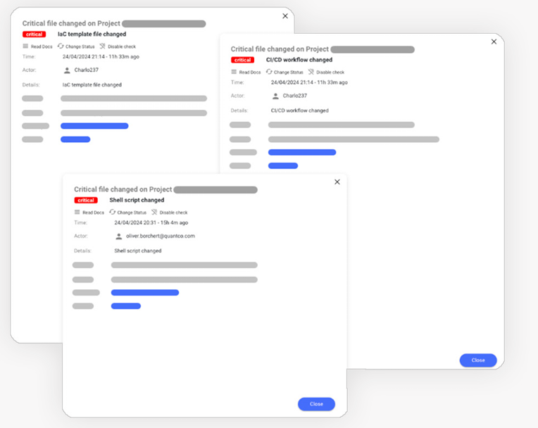 • Infrastructure as Code (IaC): Identifies modifications in IaC templates