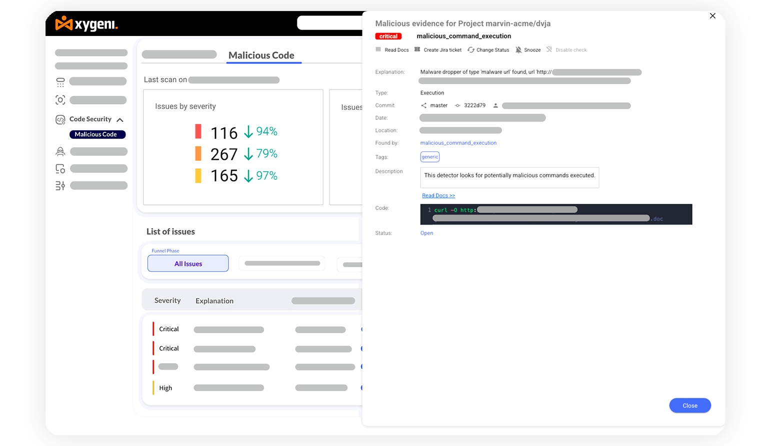 Leverage Xygeni’s ML-assisted engine to detect and block unknown malware, ensuring protection beyond CVE-based threats.