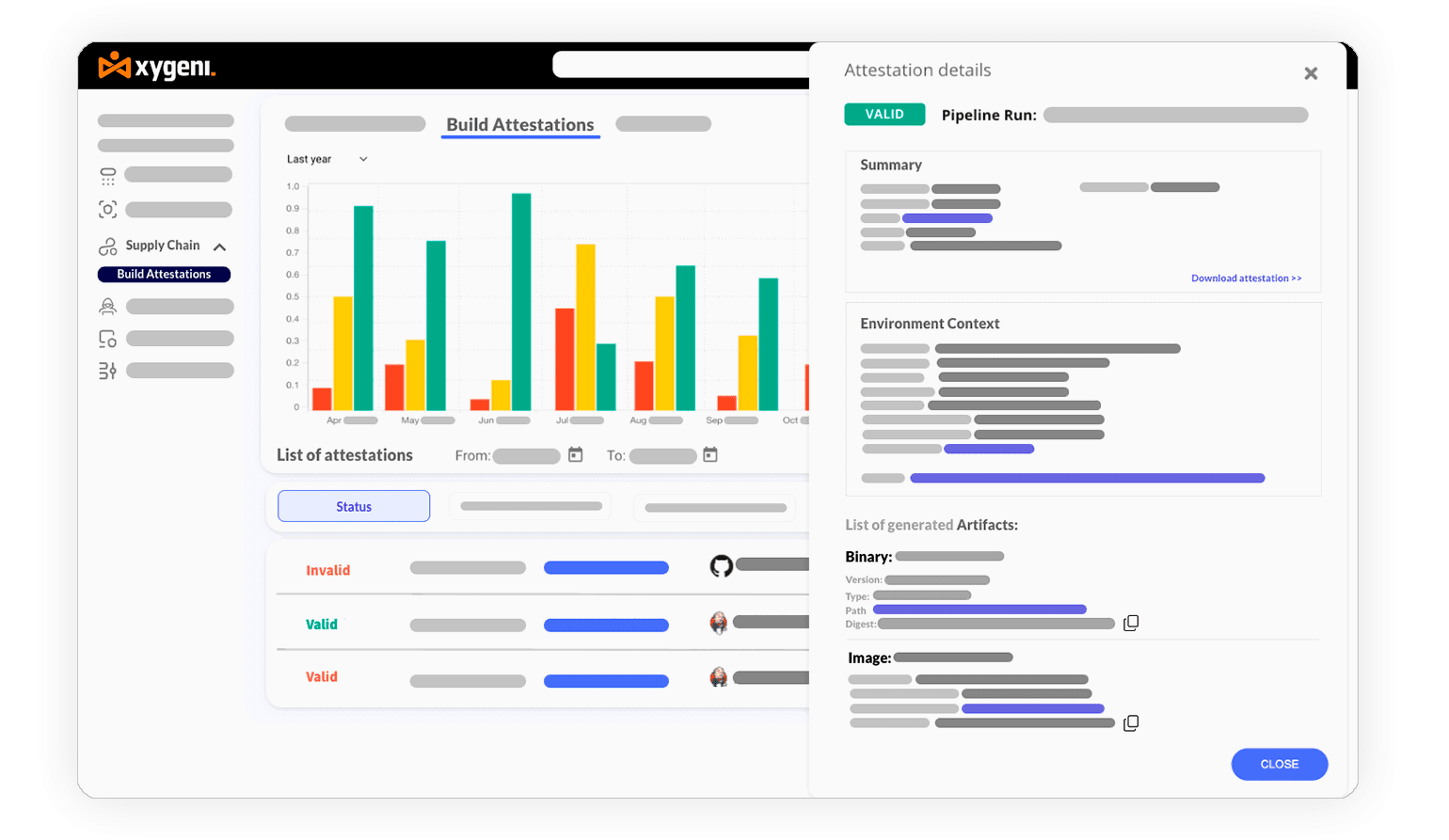 View and download all generated attestations with ease, ensuring real-time access to critical security evidence and provenance across your software supply chain.