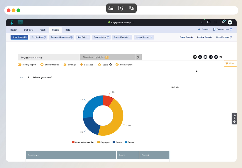 Dissect responses with custom filters to uncover response trends and patterns using our survey software’s leading analytics.