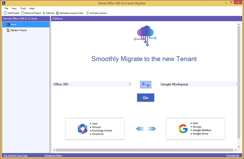 Complete solution to migrate Office 365 to Google Workspace with zero data loss. Transfer Office 365 users, mailboxes, groups, drives, and workloads to Google Workspace. Kernel Office 365 to Google Workspace Migration Tool features an interactive GUI interface integrated with advanced filters for smooth migration.